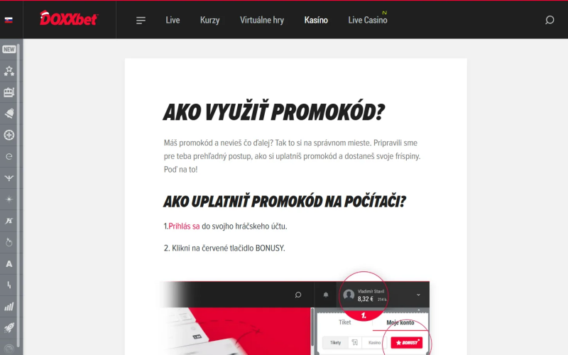 Ako použiť bonus v kasíne DOXXbet?